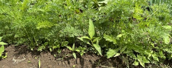 El eneldo que se deja crecer entre las hileras de zanahorias crea una especie de capullo aromático que desorienta a la mosca de la zanahoria, el principal enemigo.
